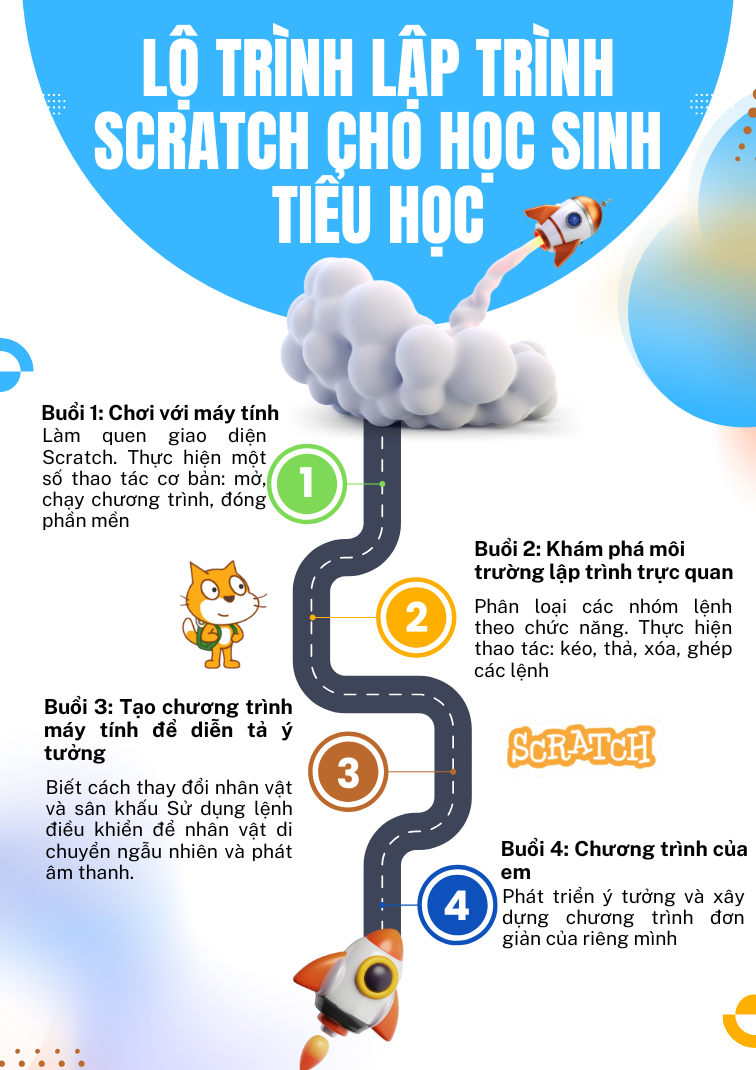 Trong thế giới sáng tạo của Scratch, mỗi bạn nhỏ đều có thể trở thành một nhà phát minh nhí! Không cần công thức khó, không cần kiến thức cao siêu—chỉ cần trí tưởng tượng và vài mảnh ghép lệnh đầy màu sắc.